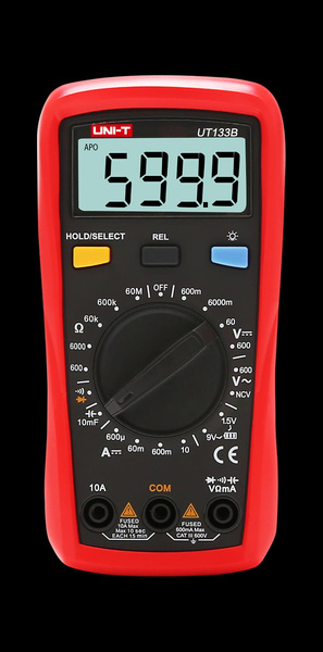 Pojemność: 9,999 nF/99,99 nF/999,9 nF/9,999 µF/99,99 µF/999.9 µF/9,999 mF ±(4%+2)