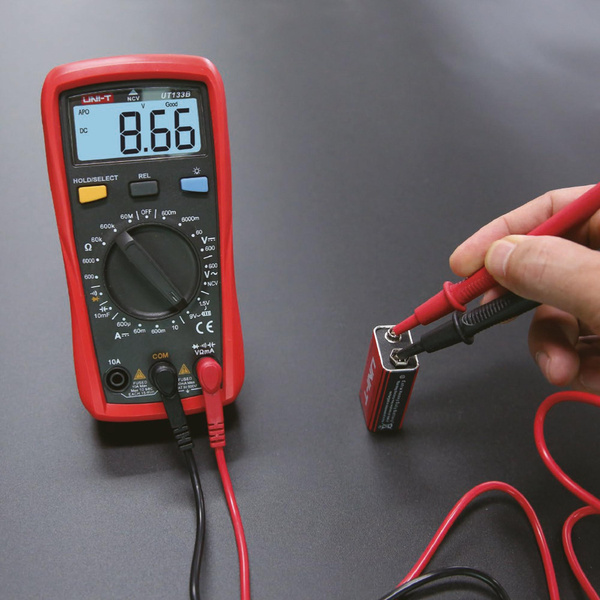 Akcesoria: Baterie, przewody pomiarowe, holster