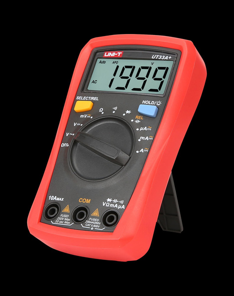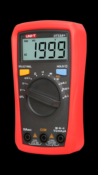 Natężenie prądu stałego DC: 200 µA / 2000 µA / 20 mA / 200 mA / 2 A / 10 A ±(1%+2)