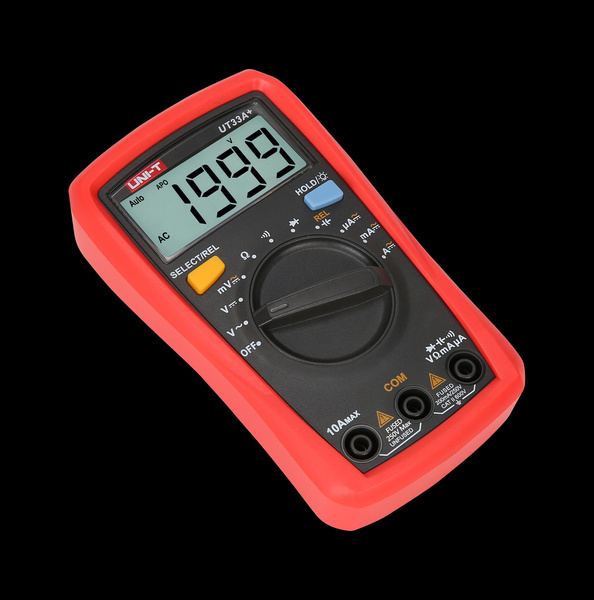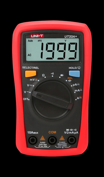 Natężenie prądu zmiennego AC: 200 µA / 2000 µA / 20 mA / 200 mA / 2 A / 10 A ±(1,2%+3)
