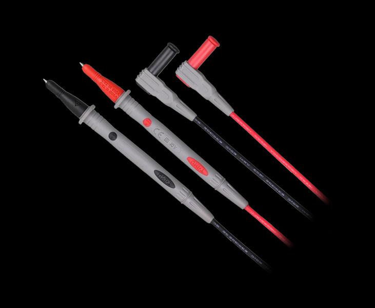 Akcesoria: baterie, przewody pomiarowe, przewód USB, sonda pomiaru temperatury, przystawka