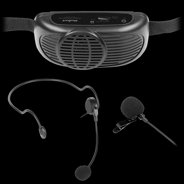 Zawartość: wzmacniacz; mikrofon: na głowę, klip; ładowarka, montaż do pasa