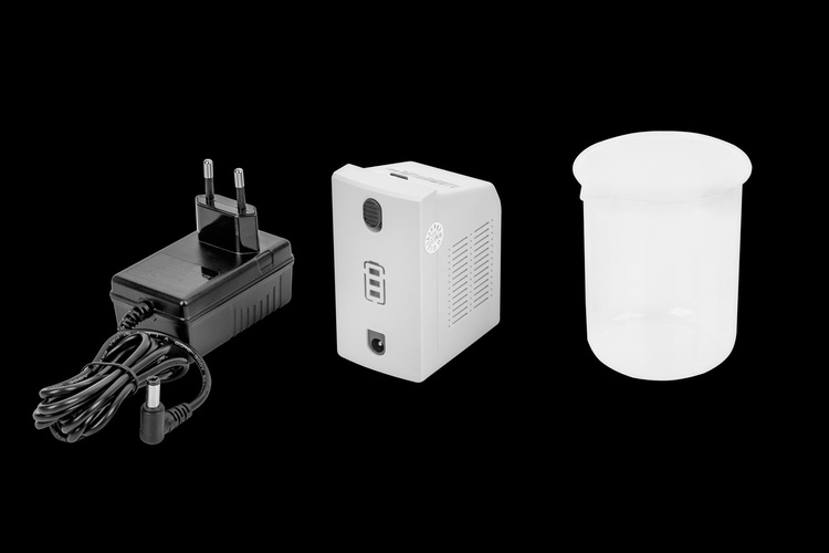 W zestawie: 2x ściereczka do woskowania, 2x ściereczka do mopowania, miarka, 2x bateria AAA, zasilacz sieciowy, instrukcja obsługi