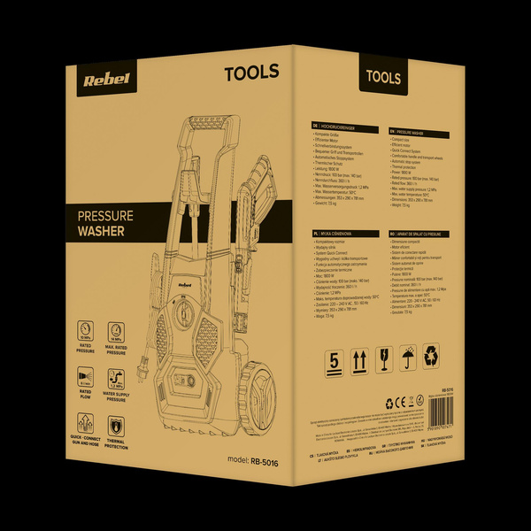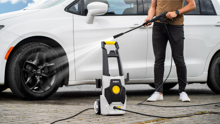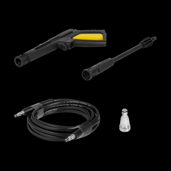 W zestawie: pistolet, lanca z regulowaną dyszą, wąż, adapter wejściowy z filtrem
