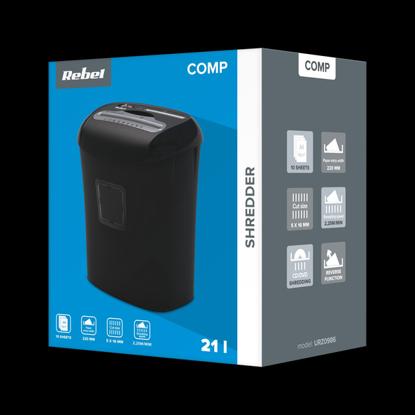 Niszczarka dokumentów REBEL, kart, CD z koszem 21 L