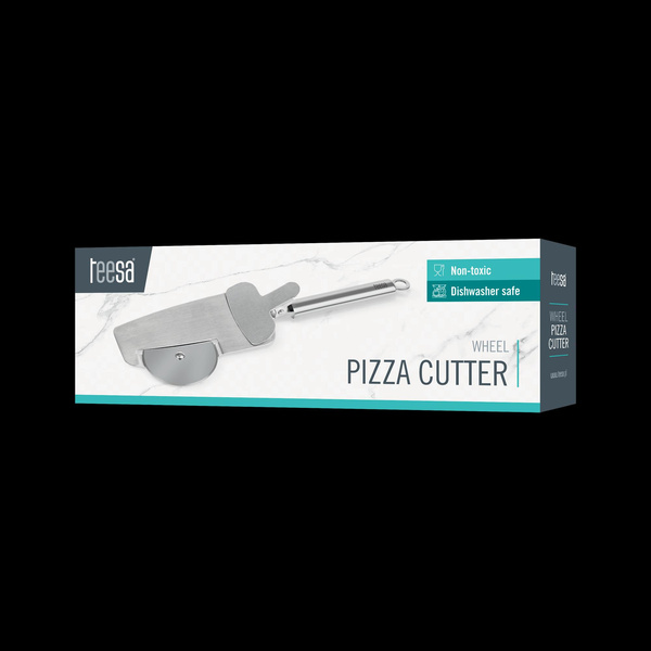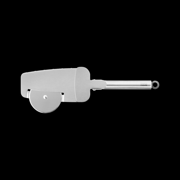 Nóż do pizzy z tarczą tnącą, zębami tnącymi brzegi oraz łopatką z zaciskiem