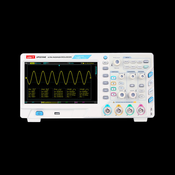 Pomiar automatyczny 27 parametrów: Peak-Peak, Amplitude, Maximum, Minimum, Top, Bottom, Mean, Middle, Cycle Mean,RMS, Cycle RMS, Area, Cycle Area, Overshoot, Preshoot, Frequency, Cycle, Rise Time,Fall Time, Positive Pulse, Negative Pulse, Positive Duty Ratio, Negative Duty Ratio,Delay A->B (Rising edge), Delay A->B (Falling edge), Delay B->A (Rising edge), Delay B->A (Falling edge).
