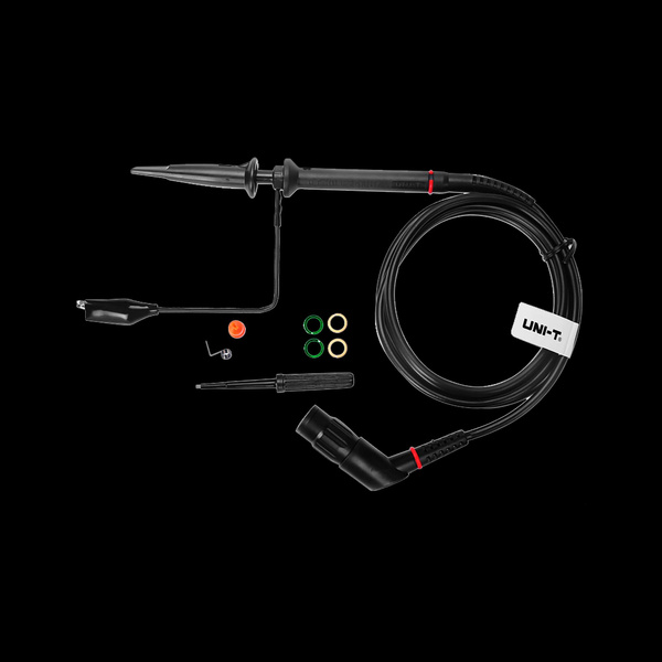 Akcesoria: przewód sieciowy, przewody pomiarowe, sonda pomiarowa, przewód USB, zasilacz, przystawki do pomiaru natężenia prądu
