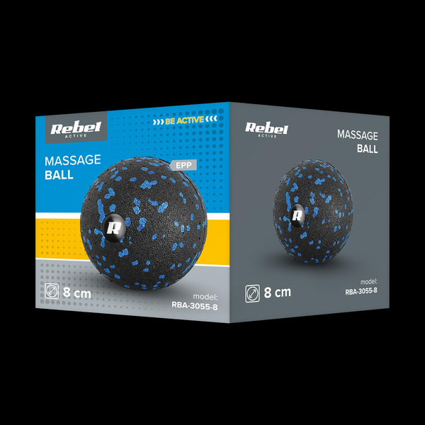 Piłka do masażu 8cm, kolor czarno-niebieski, materiał EPP, REBEL ACTIVE