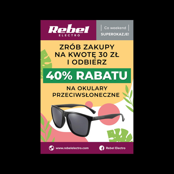 Treść: Rebel Electro - Co weekend SUPEROKAZJE: Zrób zakupy na kwotę 30 zł i odbierz 40% rabatu na okulary przeciwsłoneczne
