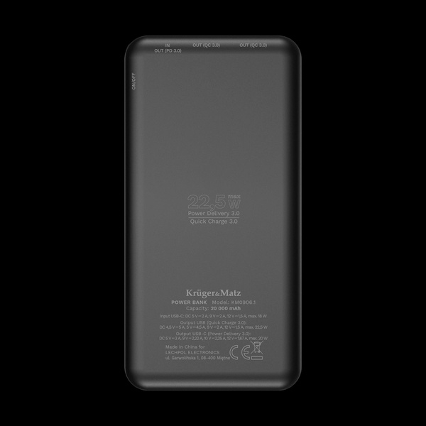 POWER BANK Kruger&Matz 20000 mAh Li-pol z funkcją QC oraz PD