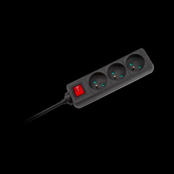 Przedłużacz czarny Rebel z przełacznikiem 3 gniazda - 3m (1,5mm)