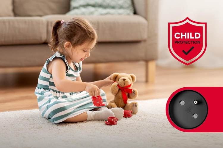 Przedłużacz sieciowy Rebel czarny 5 gniazd z przełącznikiem, kabel 3m (1,5mm)