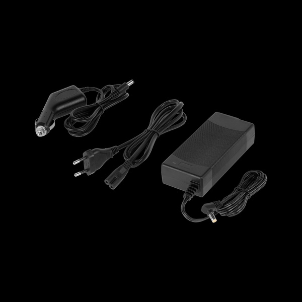 W zestawie: stacja zasilania, zasilacz, ładowarka samochodowa, instrukcja