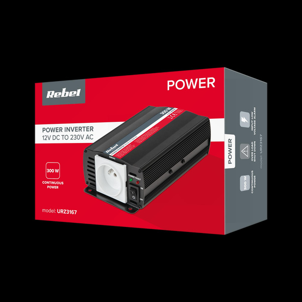 Przetwornica REBEL 12V/230V 300W(gn. typu E:polskie, francuskie)