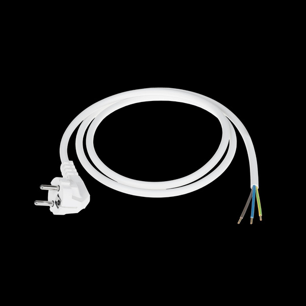 Przewód zasilający 3x1,5mm biały 3m z wtyczką kątową