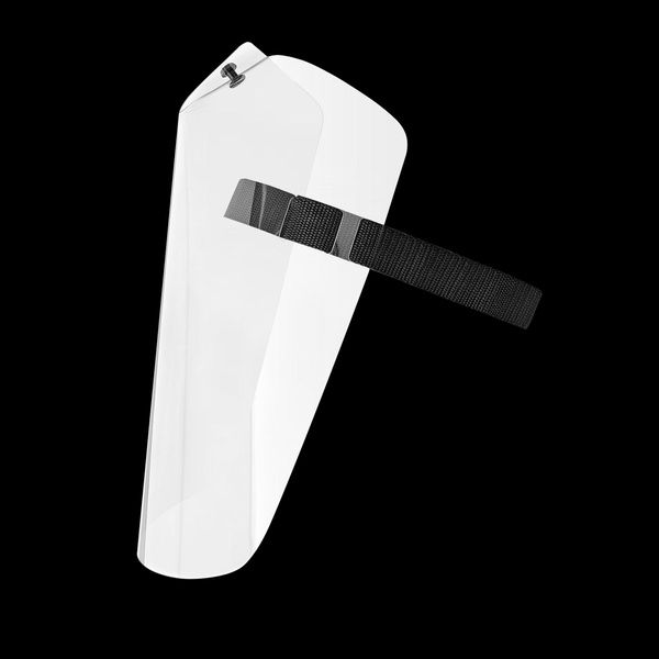 - Mocowana na czole regulowana opaska wykonanana z trwałego poliestru, materiału łatwego do czyszczenia i dezyfekcji.