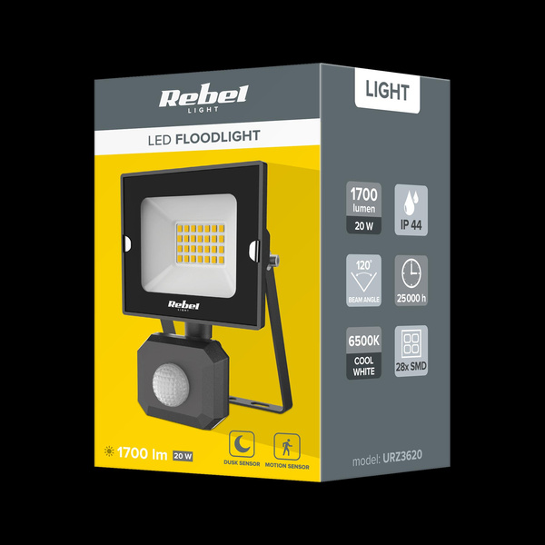 Reflektor Led 20W z sensorem zmierzchu i ruchu , 6500K, 230V