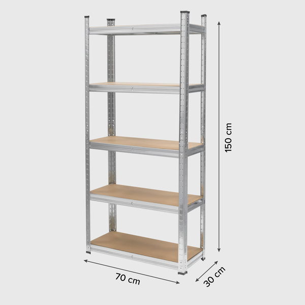 Regał metalowy magazynowy 150x70x30 srebrny Rebel
