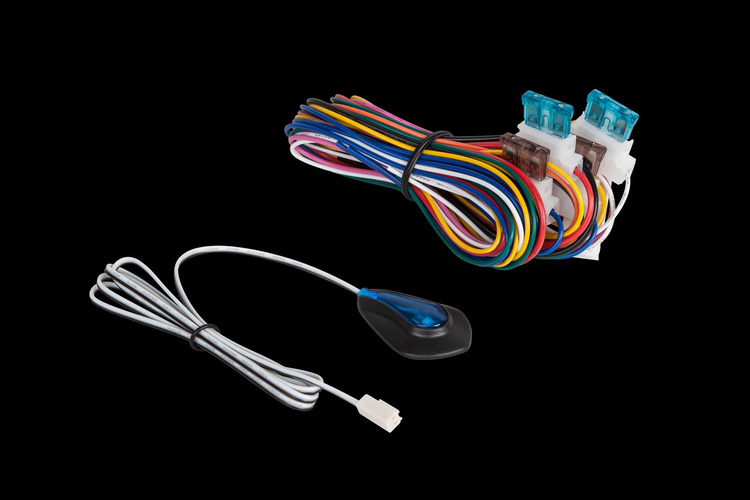 W zestawie: sterownik, 2 piloty, okablowanie