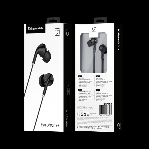 Słuchawki dokanałowe z mikrofonem na USB-C Kruger&Matz C1 czarne