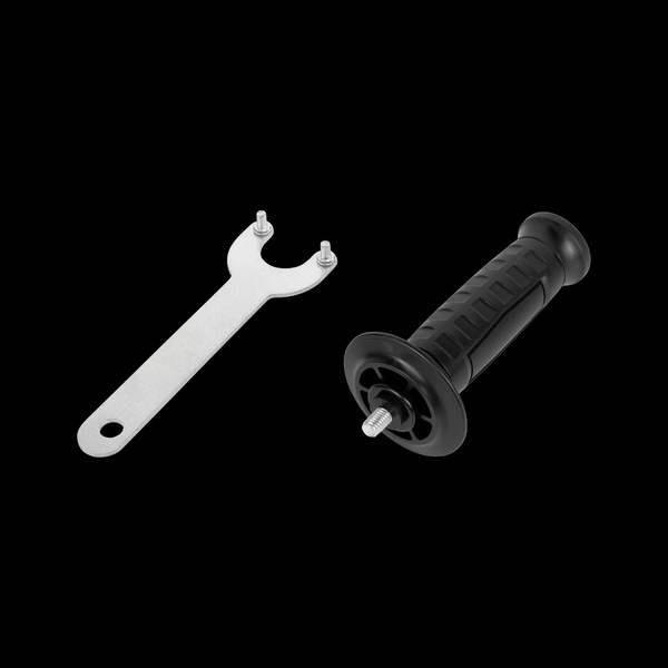 W zestawie: rękojeść boczna, osłona tarczy, klucz, instrukcja obsługi