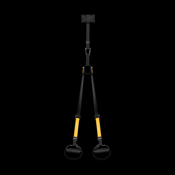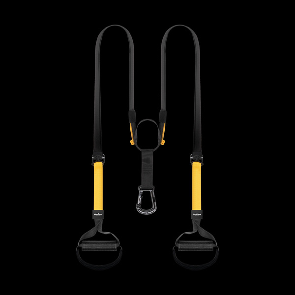 W zestawie: 1x taśma, 1x taśma przedłużająca z karabińczykiem (90 cm), 1x taśma pomocnicza (95 cm), 1x uchwyt do drzwi (35 cm), woreczek do przechowywania