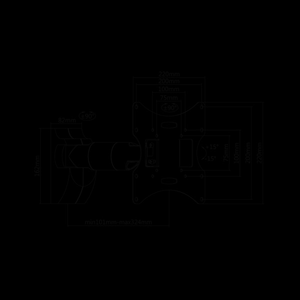 Standard VESA: 75x75, 100x100, 200x100, 200x200