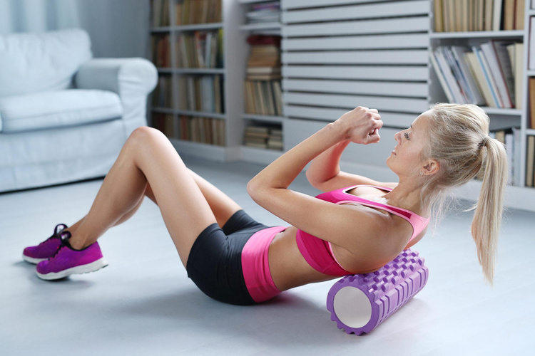 Wałek z wypustkami do masażu 14x33cm, kolor fioletowy, materiał EVA, REBEL ACTIVE