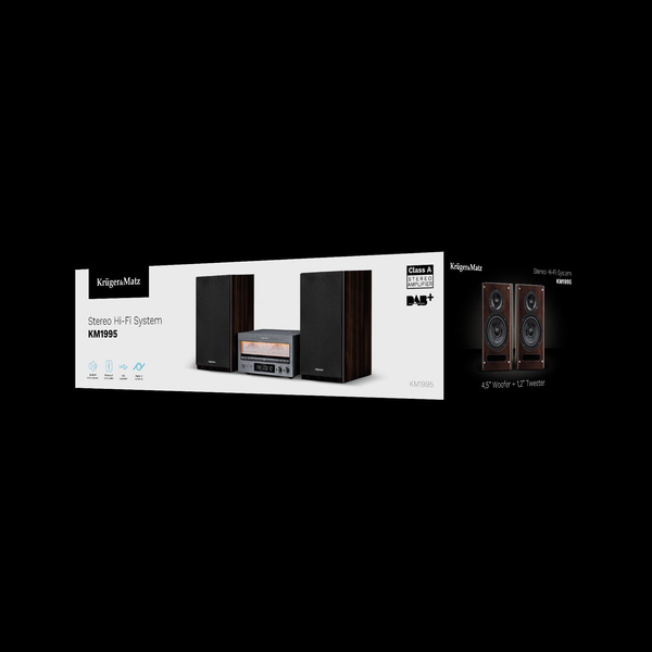 Wieża HiFi Kruger&Matz KM1995 (Wzmacniacz klasy A, CD, USB, Bluetooth, radio cyfrowe DAB+, FM)