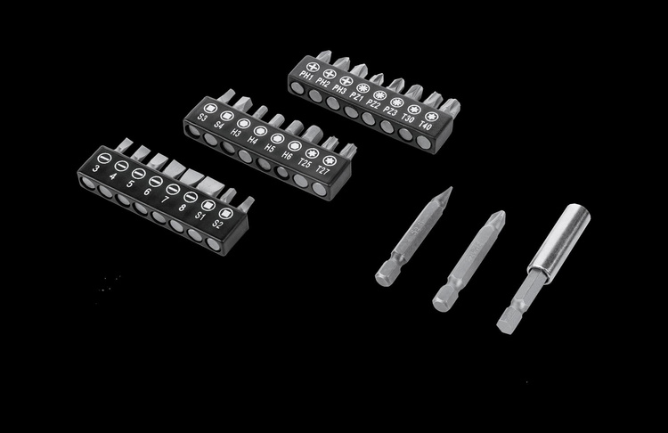 W zestawie: 27 akcesoriów, ładowarka sieciowa, instrukcja obsługi