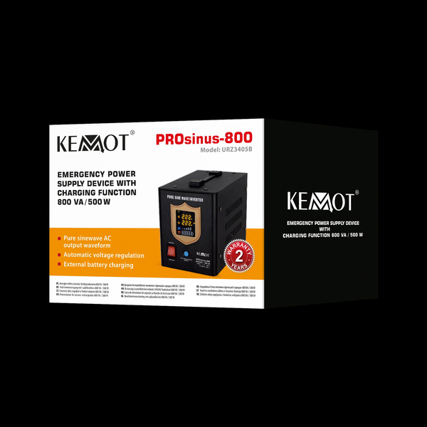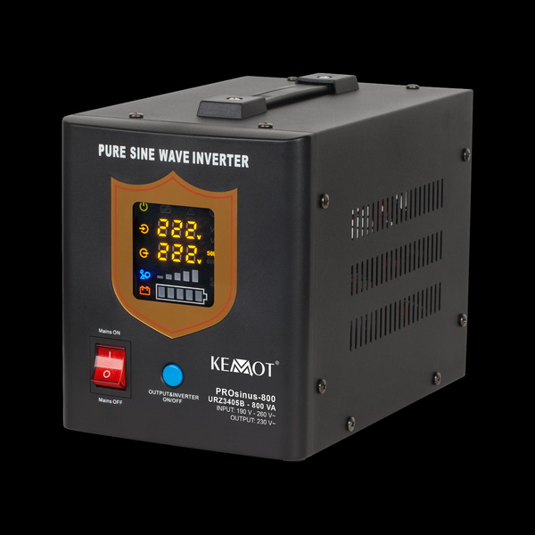 Zasilacz awaryjny KEMOT PROsinus-800 przetwornica z czystym przebiegiem sinusoidalnym i funkcją ładowania 12V 230V 800VA/500W - kolor czarny