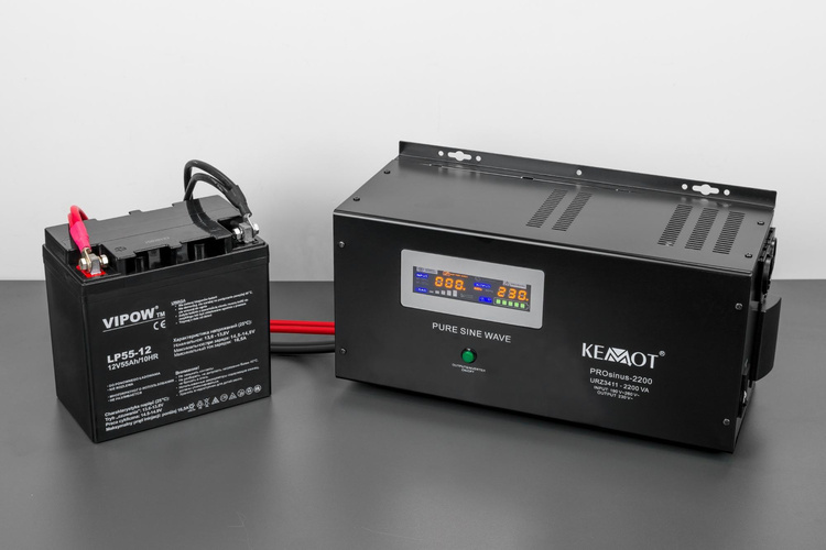 Zasilacz awaryjny naścienny KEMOT PROsinus-2200 przetwornica z czystym przebiegiem sinusoidalnym i funkcją ładowania 12V 230V 2200VA/1600W