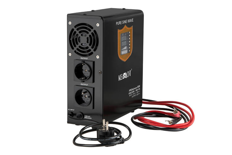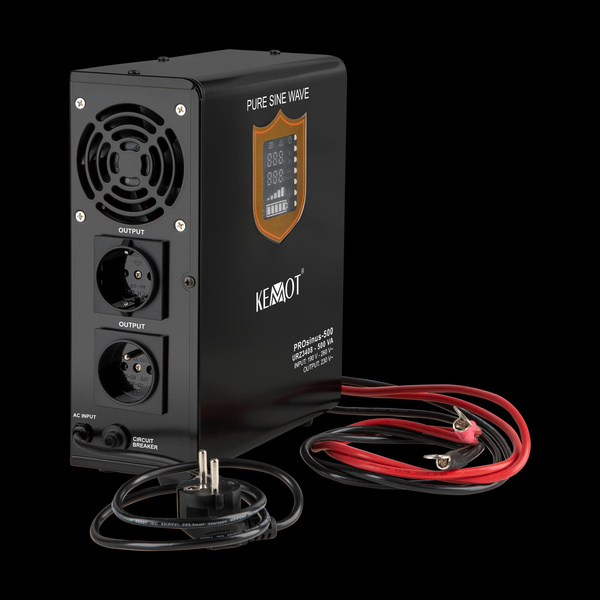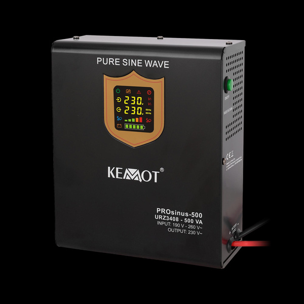 Zasilacz awaryjny naścienny KEMOT PROsinus-500 przetwornica z czystym przebiegiem sinusoidalnym i funkcją ładowania 12V 230V 500VA/300W