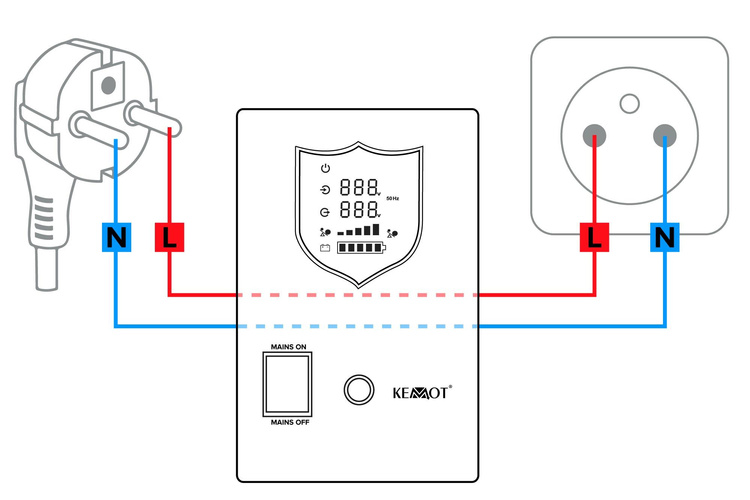 Zasilacz awaryjny naścienny KEMOT PROsinus-800 przetwornica z czystym przebiegiem sinusoidalnym i funkcją ładowania 12V 230V 800VA/500W