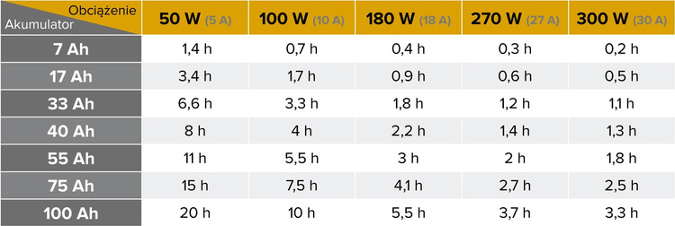 Pojemność akumulatora: 50-200 Ah (sugerowana: 80 Ah)
