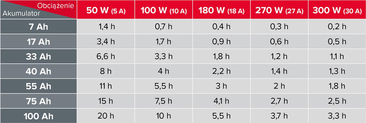 Pojemność akumulatora: 50-200 Ah (sugerowana: 55 Ah)