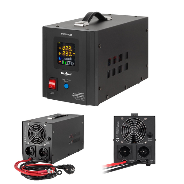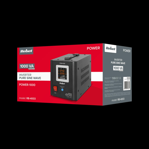 Zasilacz Awaryjny Rebel POWER-1000 - przetwornica z czystym przebiegiem sinusoidalnym i funkcją ładowania 12V 230V 1000VA/700W