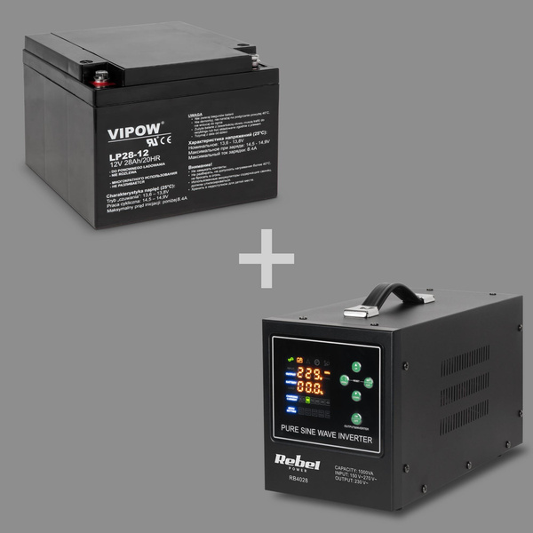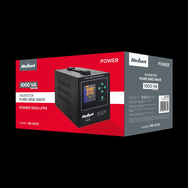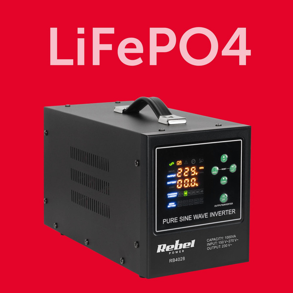 Zasilacz awaryjny Rebel POWER-1000-LFP4 - przetwornica z czystym przebiegiem sinusoidalnym i funkcją ładowania 12V 230V 1000VA/700W