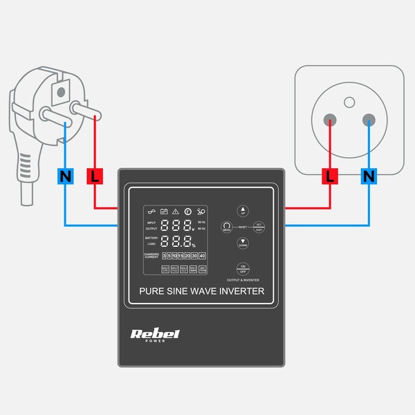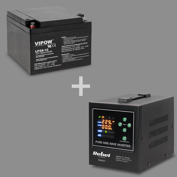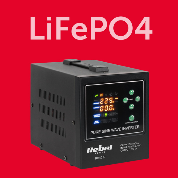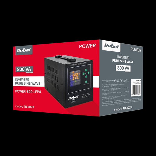 Zasilacz awaryjny Rebel POWER-800-LFP4 - przetwornica z czystym przebiegiem sinusoidalnym i funkcją ładowania 12V 230V 800VA/500W