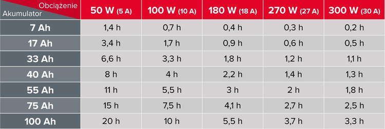 Pojemność akumulatora: 50-200 Ah (sugerowana: 55 Ah)