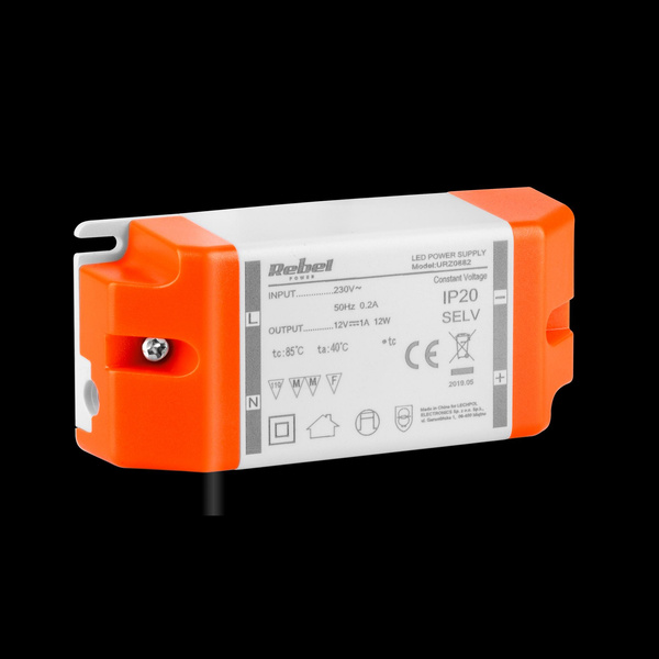 Zasilacz REBEL do sznurów diodowych LED 12V 1A (YSL12-1201000) 12Watt max.