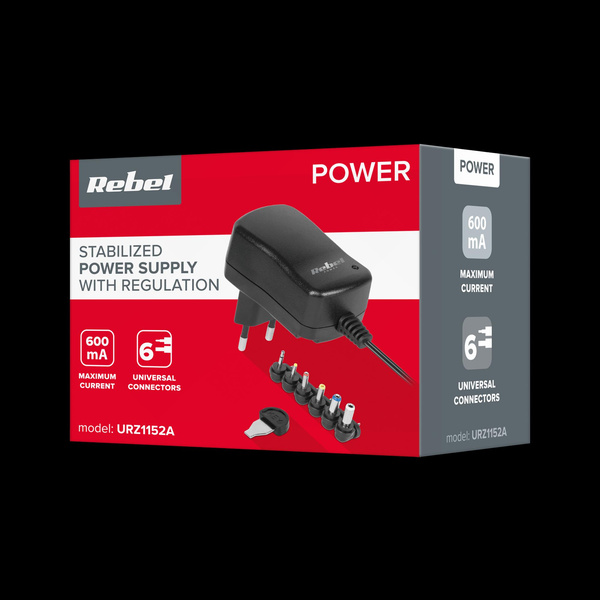 Zasilacz stabilizowany z regulacją Rebel 12V 600mA