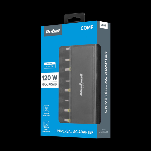 Zasilacz uniwersalny Rebel 11 końcówek 120 W 12-19.5 V automatyczny