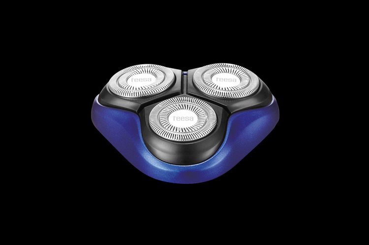 Trzy stalowe, elastyczne ostrza dostosowujące się do każdego kształtu twarzy