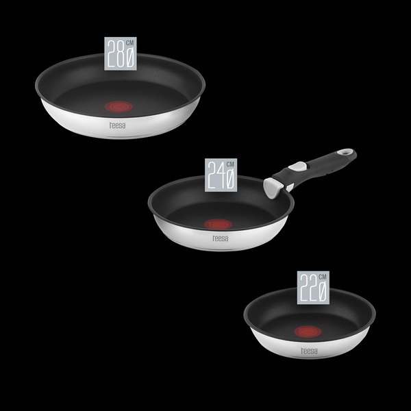 Zestaw patelni z odłączaną rączką 22cm , 24cm 28 cm TEESA FRYING PANS SINGLE HAND