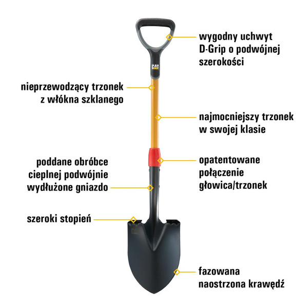 Szpadel z ostrą łyżką CAT K-Series D-Handle Round Point (0841308101026) - Cat