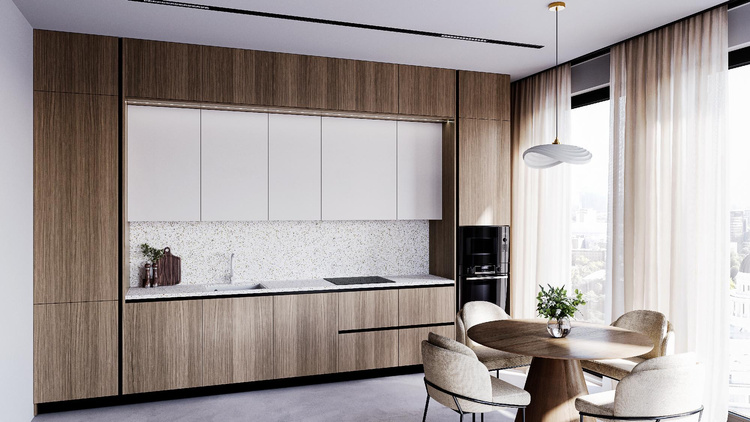 Okap kuchenny Pinelio jest chętnie wybierany do kuchni zamkniętych jak i tych większych otwartych na inne pomieszczenia.