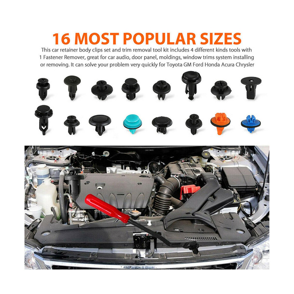 16 najpopularniejszych rozmiarów: ten zestaw klipsów do karoserii samochodu i zestaw narzędzi do zdejmowania tapicerki.