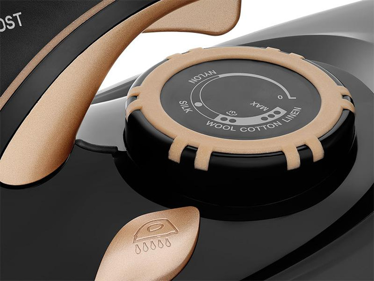 Odporna na zarysowania stopa ceramiczna zapewnia doskonały poślizg i równomierne rozprowadzanie ciepła, chroniąc tkaniny przed uszkodzeniami. Idealna dla delikatnych materiałów oraz tych wymagających większej precyzji.